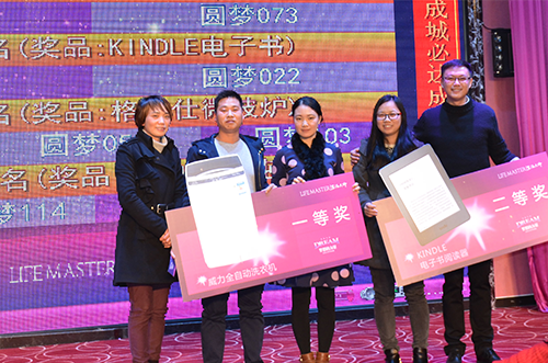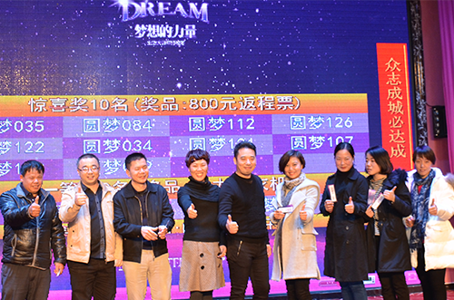 大家脸上都洋溢着新年的喜庆、晚宴的欢喜、不减的热情,因为今天全场人人有奖,个个开心。今年营业部叶秋玲运气爆棚,把最终大奖抱入怀中。新的一年,新的运气,去年的那一晚,我们为生活大师欢呼,今年的这一夜,我们为生活大师喝彩。生活大师,加油! 心中有梦,一起拼;众志成城,必达成!必达成!2016,看我们的!