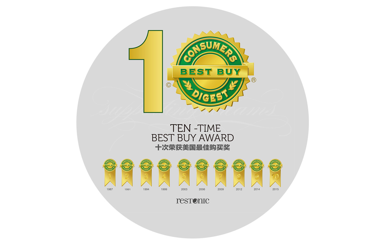 美国蕾丝以高度标准的质量与服务,成为全球唯一连续十次荣获best buy最佳购买奖的床垫品牌,这是消费者对蕾丝床垫的高度认可!