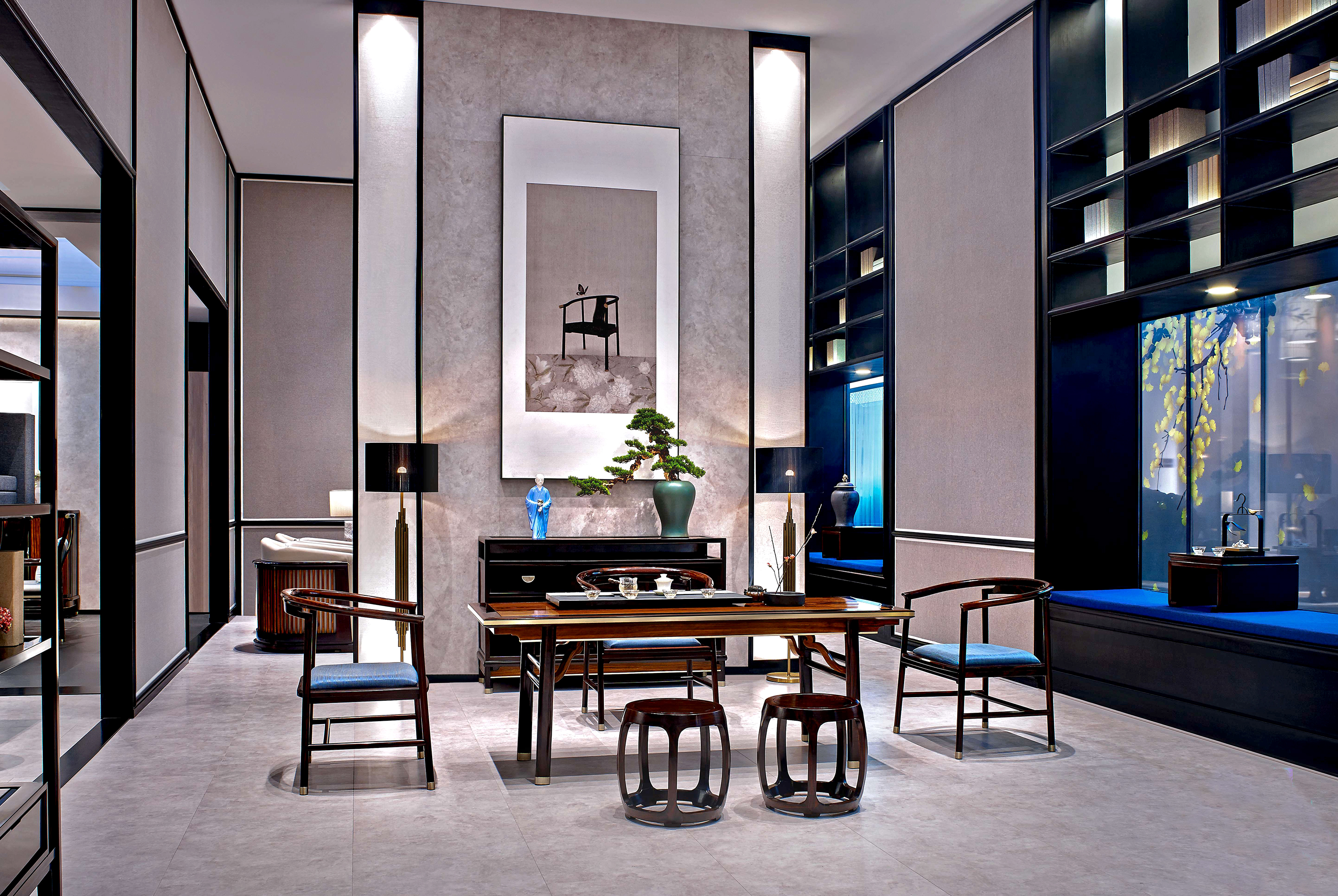 东方美学更讲究意境及韵味,产品均采用东南亚名贵硬木,纯榫卯结构打造,辅以山水为媒,云墨作线,丹青为色,构造现代都市诗意栖息空间。