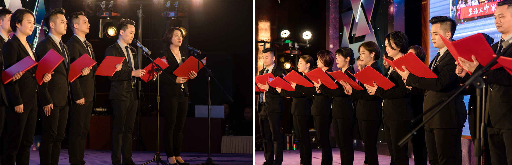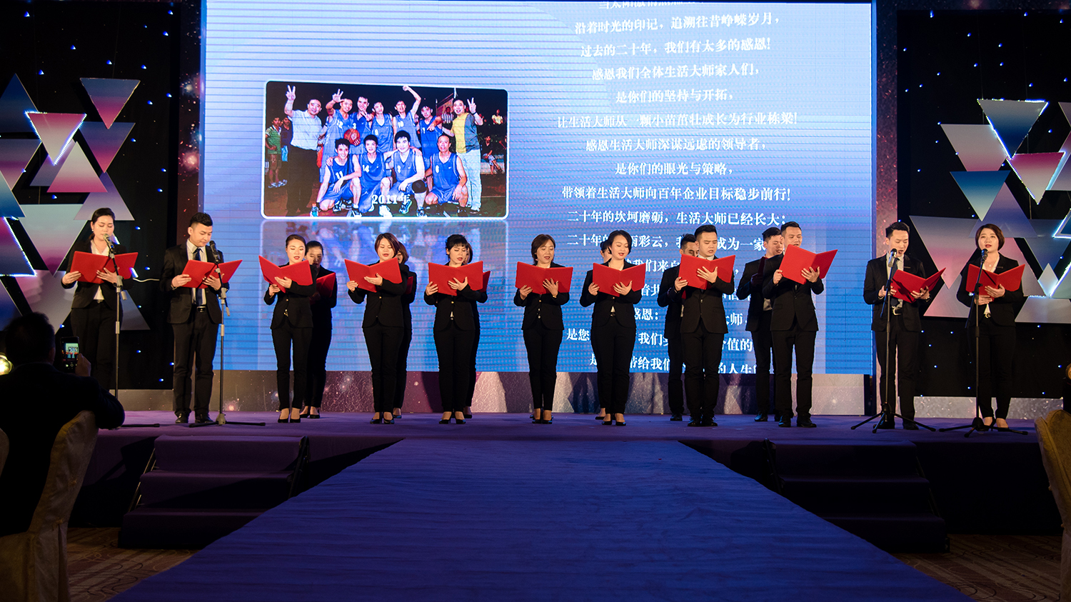 一首慷慨激昂而又饱含深情的诗歌朗诵拉开了晚宴的序幕!追溯往昔峥嵘岁月,生活大师20年来高楼平起,每一砖一瓦都离不开全体员工的共同努力、奋力拼搏。