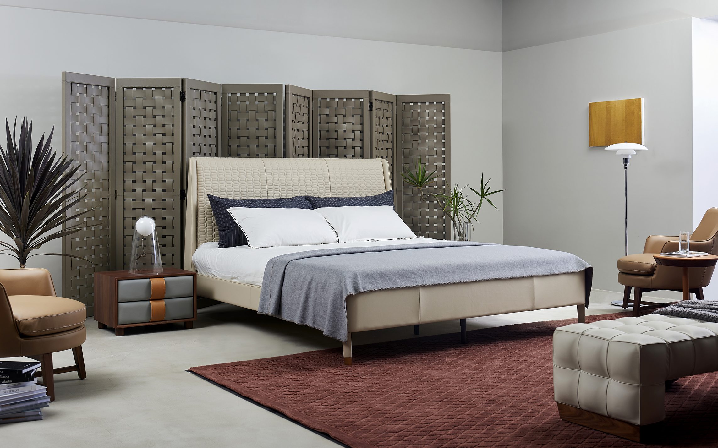 落在不同颜色层次的卧室空间
