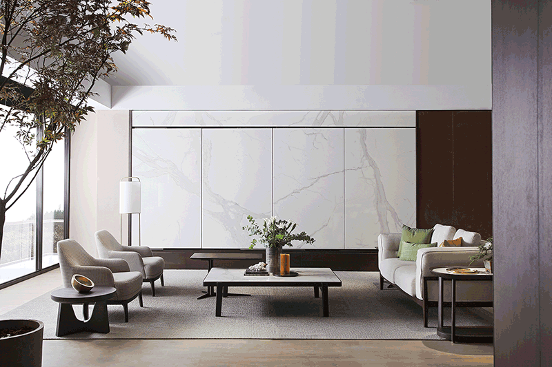 一体墙电视柜,整体简而不凡,融合电视柜、收纳柜、展示柜、等功能为一体,为空间建立全面的储物系统,超大空间展示,一开一合,皆是风景。