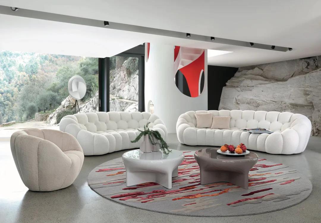 Bubble 沙发宛如软绵绵的云朵,打造出一个温和、纯粹的梦幻空间。