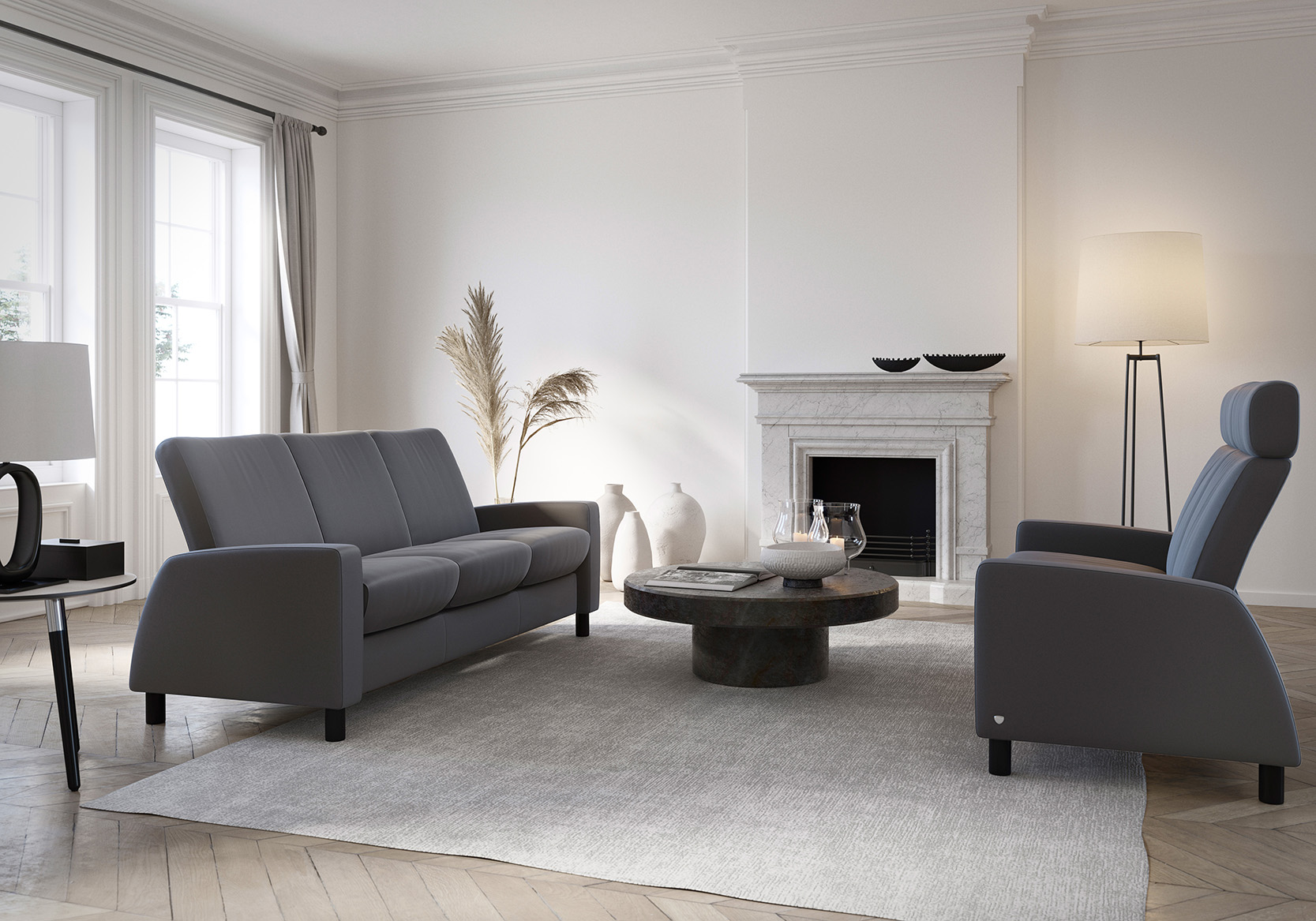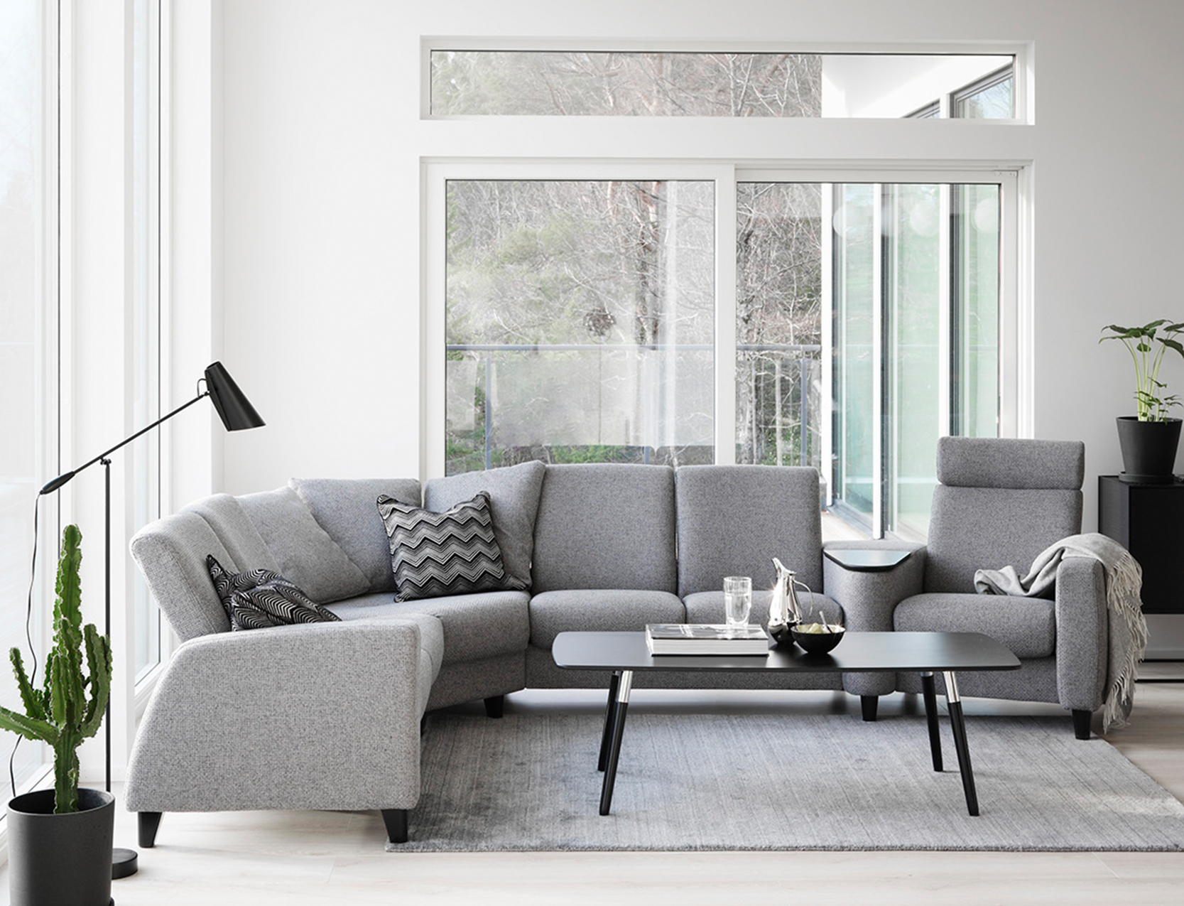 Stressless Arion沙发巧妙地利用几何图形的拼接,体现了极简的美学。沙发的坐垫和靠背连贯的视觉统一,省去了任何冗余的修饰。